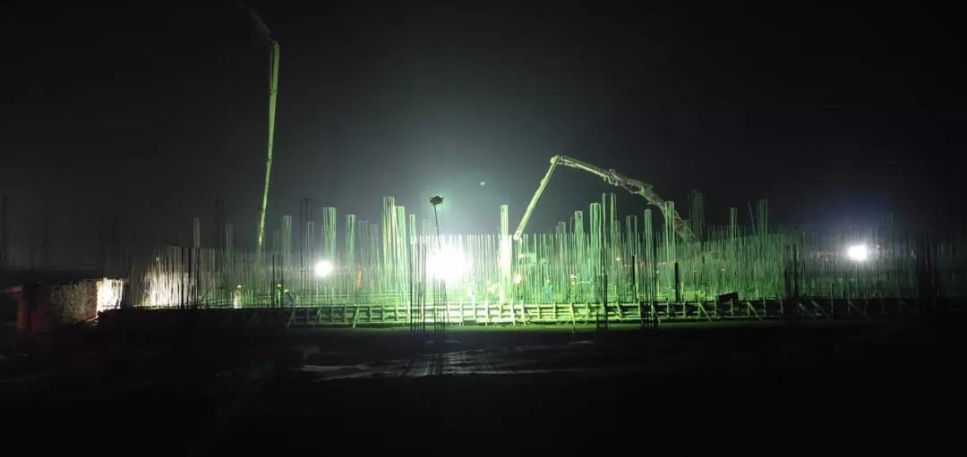 连续浇筑28小时后,1月4日早上5点,第二分公司山西沃能新能源化工项目生化组合池装置底板混凝土全部顺利浇筑完成。