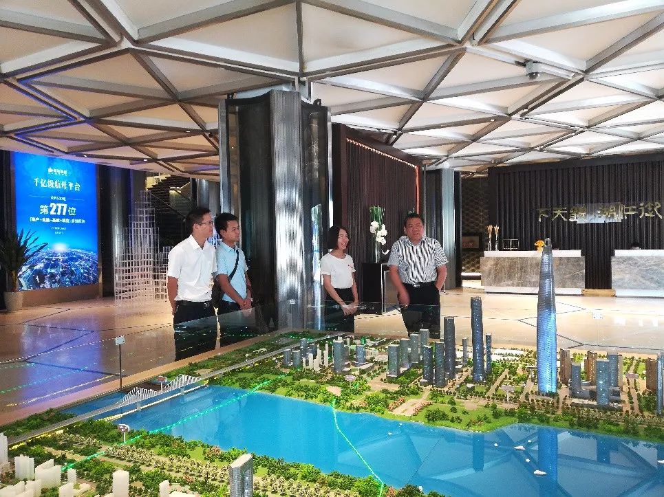 陈友智参观了绿地营销中心,了解了绿地集团在武汉市的战略规划,重点学习了超高层建筑的管理理念、施工技术和工艺等内容。