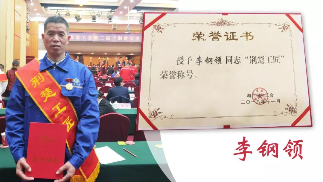 李钢领被湖北省总工会授予“荆楚工匠”荣誉称号