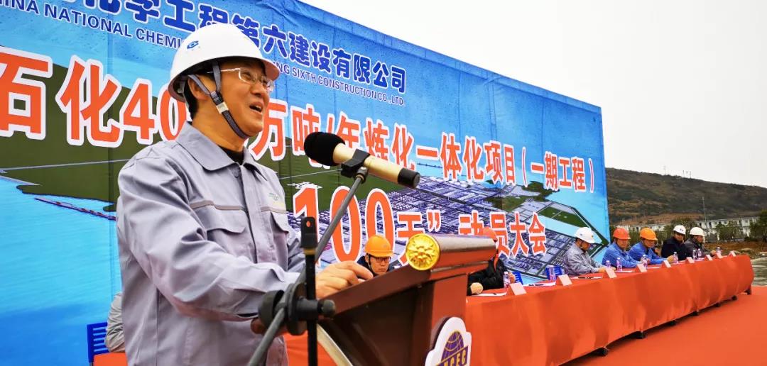 3月18日,浙江石化项目部召开“大干一百天”劳动竞赛动员大会。公司董事长、总经理胡二甫出席活动并讲话。