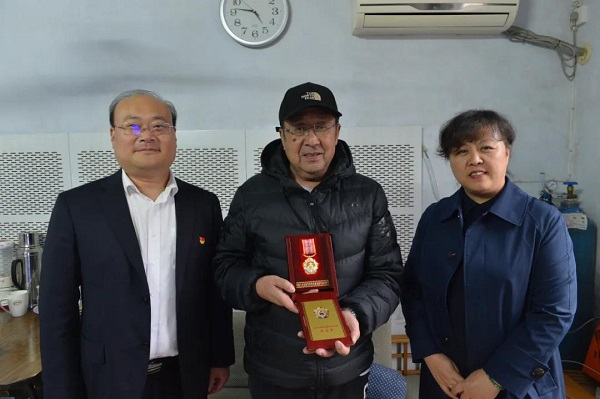 姚国庆来到抗美援朝志愿军老战士张孝清家中,为他颁发纪念章,同他亲切握手、热情交谈,仔细倾听他的战斗经历回顾,亲切询问张师傅的身体状况、家庭及生活情况,向他转达公司领导的关心和关怀,并祝福他健康长寿、阖家幸福。