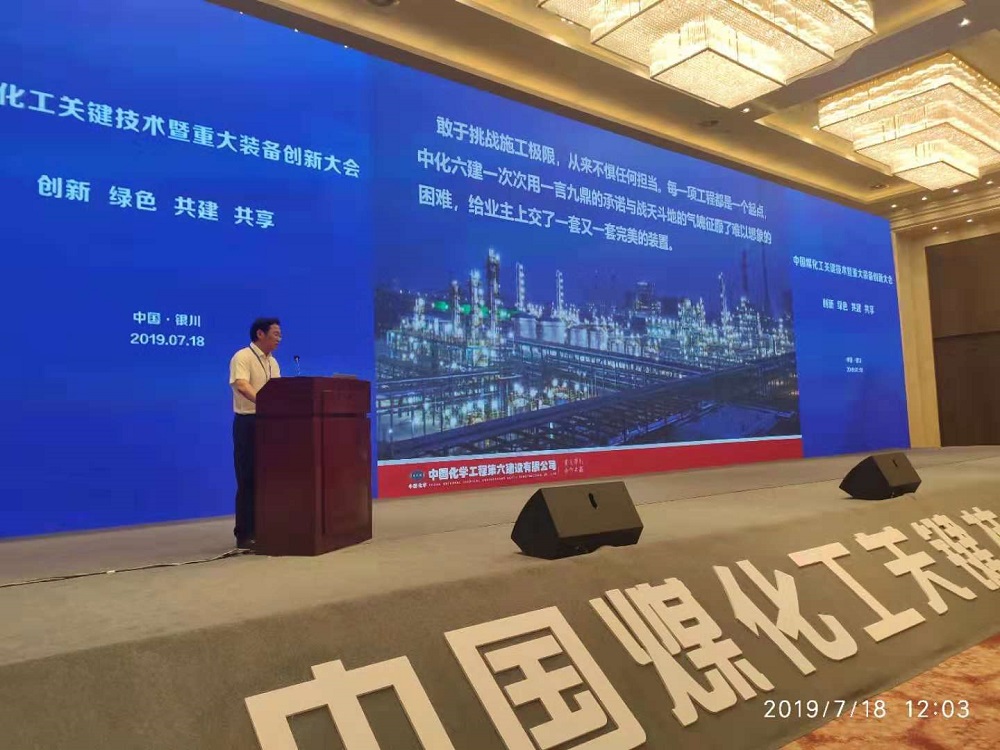 7月18日,在习近平总书记视察神华宁煤煤制油施工现场三周年之际,中国煤化工关键技术暨重大装备创新大会在宁夏银川隆重召开,参加会议的有宁夏回族自治区副主席吴秀章,工程院院士谢克昌、倪维斗、范维澄等。作为煤化工优秀施工单位的代表,公司董事长、总经理胡二甫出席盛会,并做了题为“15年,与宁煤携手同行”的主旨演讲。