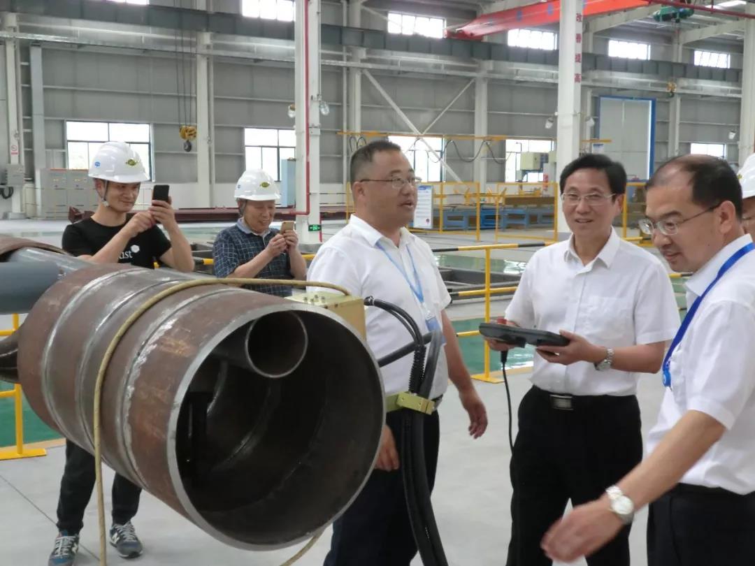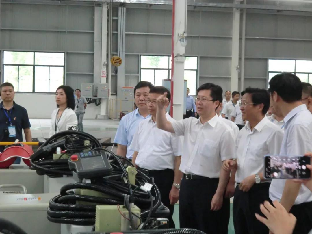 湖北省襄阳市市长郄英才同志检阅襄阳本土特色高新产品——全位置焊接机械人↓
