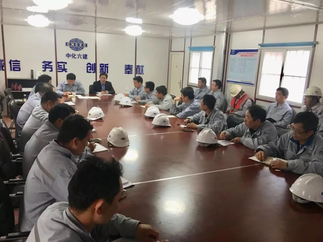 胡二甫来到恒力石化年产150万吨乙烯项目聚丙烯装置现场,详细了解了施工进度情况,与业主主要领导进行了沟通交流,对现场各参战施工队伍进行了动员部署。
