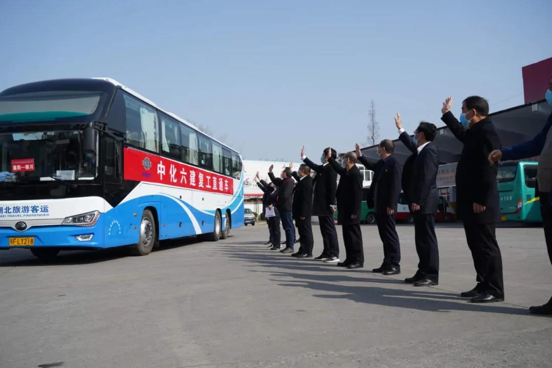 3月12日,湖北襄阳,在全国白衣守护者们支援湖北时,夏玉良、朱道强等117名蓝衣建设者也从湖北出征。5辆大巴车从襄阳出发驶往宁夏银川——这也是襄阳市第一批大规模跨省“点对点”包车运输。董事长胡二甫、党委书记敖谦与公司领导层亲往壮行。18个小时后,他们在1000公里外熟悉的异乡,在这场没有硝烟的战争中,继续未完的事业。值得一提的是,在他们之前十几天,中化六建副总经理张效康已先行到达项目现场坐镇指挥——“中化六建没有‘给我上’,只有‘跟我上’。”至此,项目进程进一步提速。