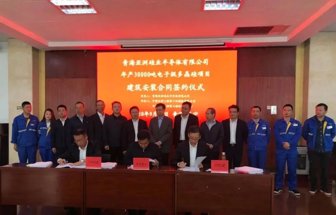 9月16日,六化建党委书记敖谦参加了青海亚洲硅业半导体有限公司年产30000吨电子级多晶硅项目建筑安装合同签约仪式,并代表六化建在合同上签字。此项目合同额3.5亿元,合同工期一年,计划在2021年9月30日实现机械竣工。