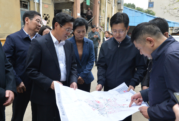 11月3日,襄阳市市长郄英才带领市直相关部门负责人到六化建基地调研棚改及旧城改造补短板工作,襄阳市副市长何飞参加调研活动,六化建董事长、总经理胡二甫陪同调研。