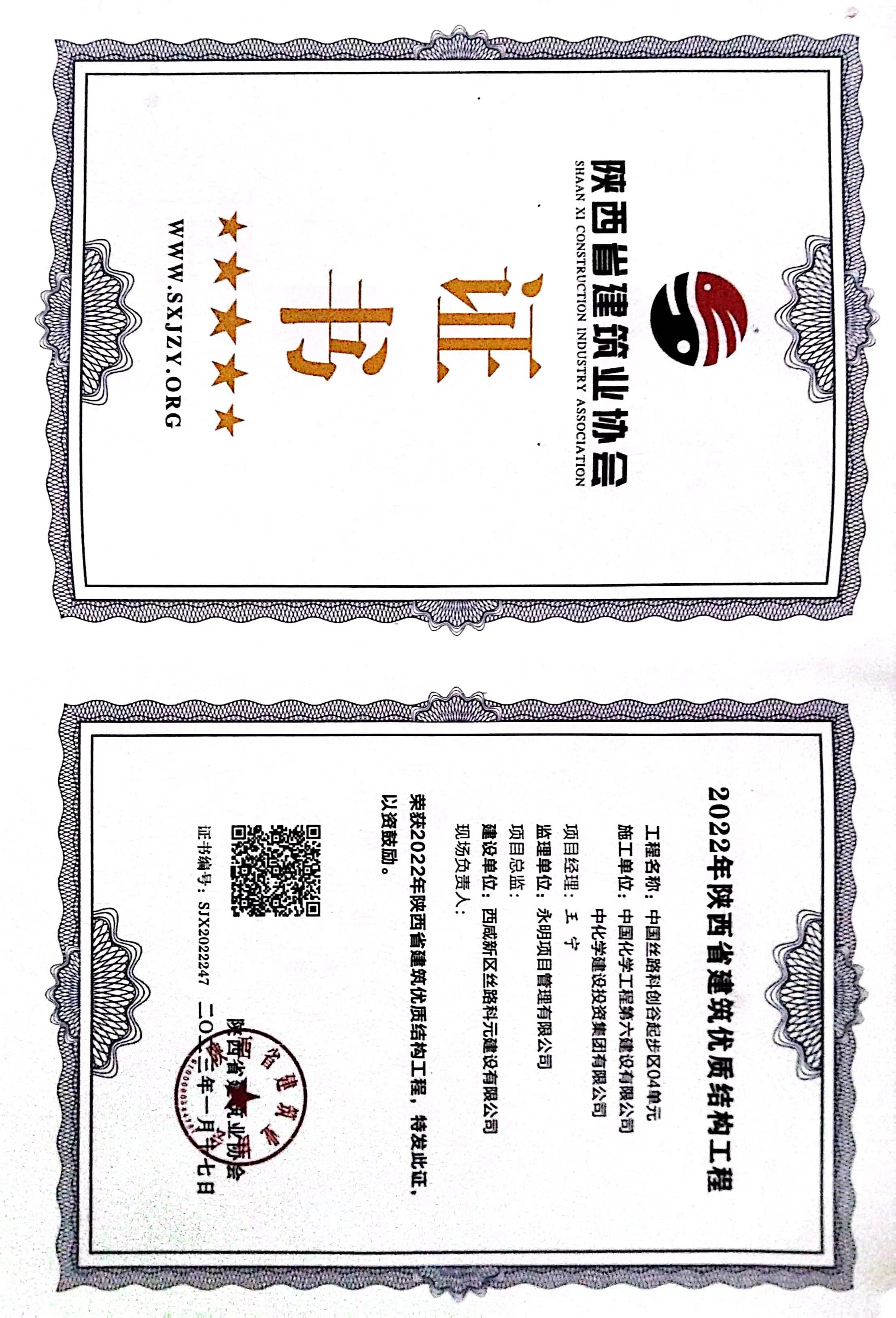 中国丝路科创谷起步区04单元获2022年陕西省建筑优质结构工程