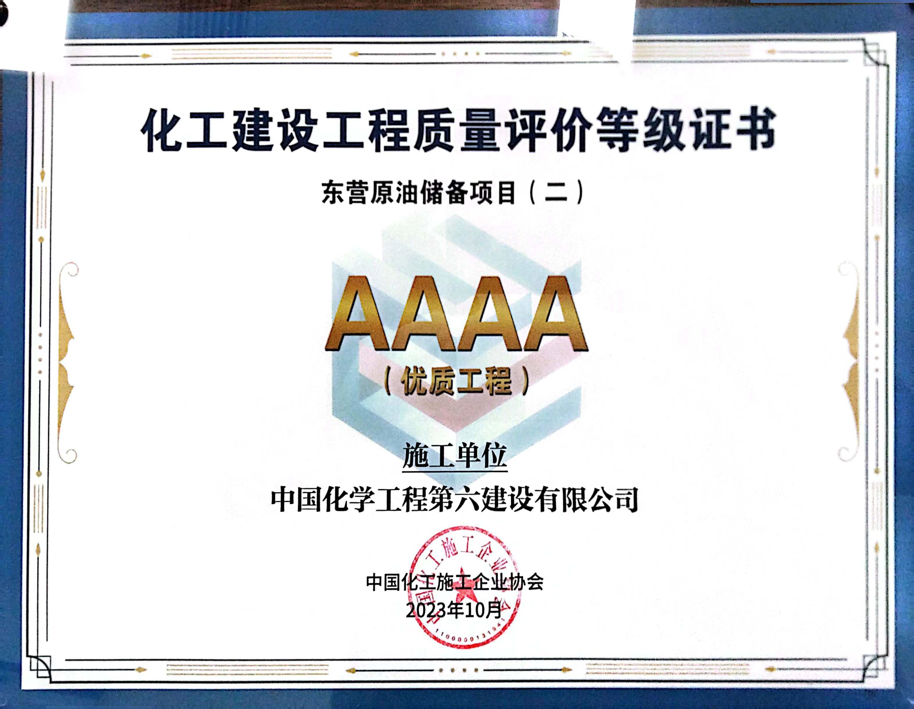 利华益利津炼化有限公司100万吨年烯烃芳烃联合项目获中化施协4A优质工程