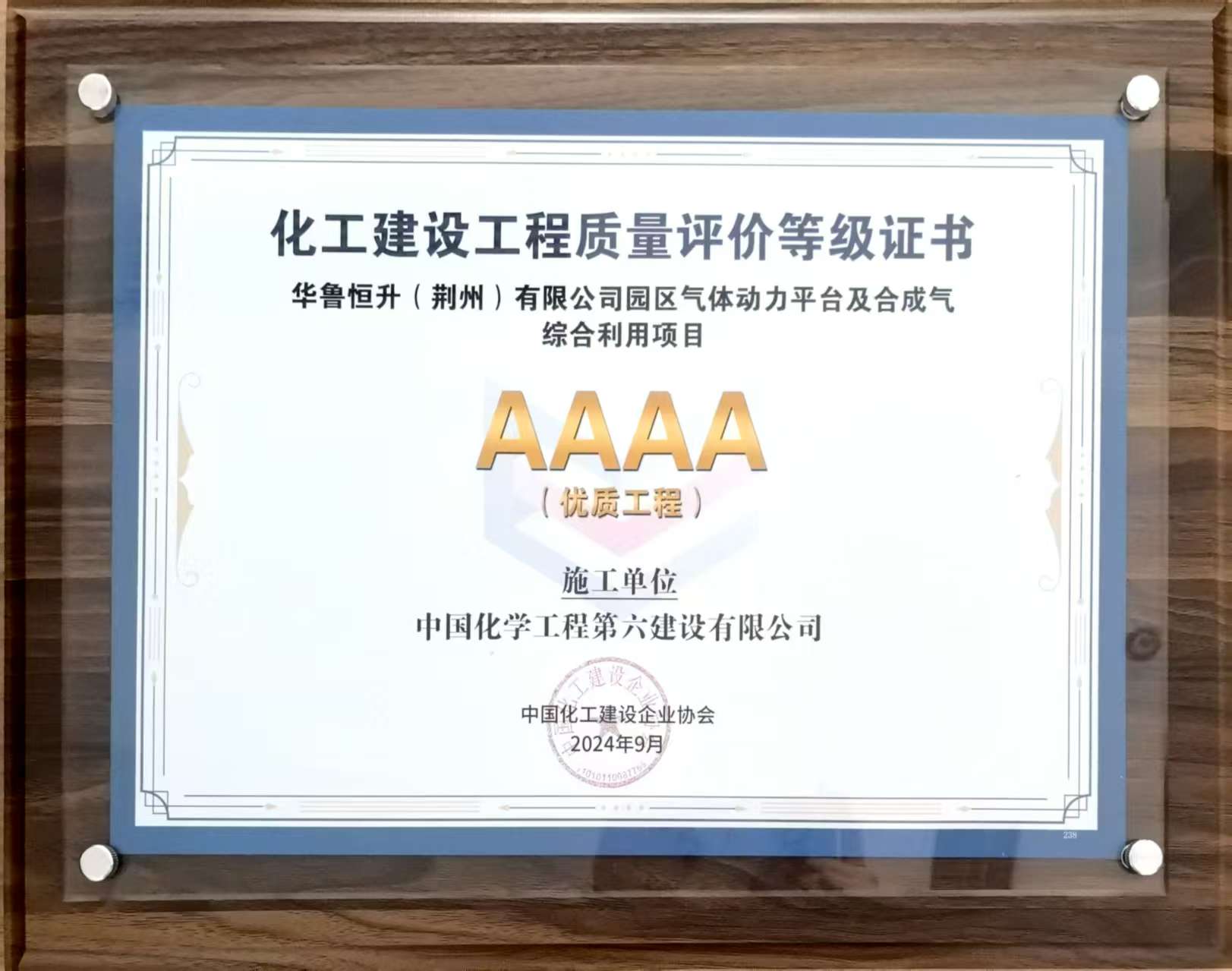 华鲁恒升(荆州)有限公司园区气体动力平台及合成气综合利用项目获化工建设4A优质工程