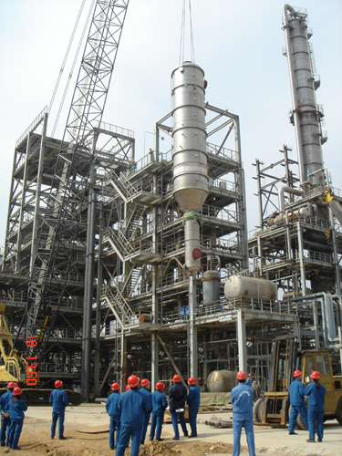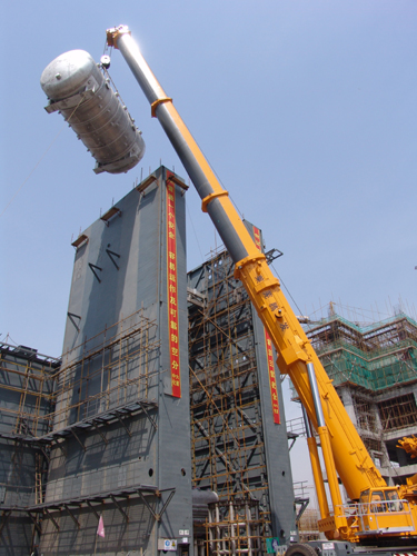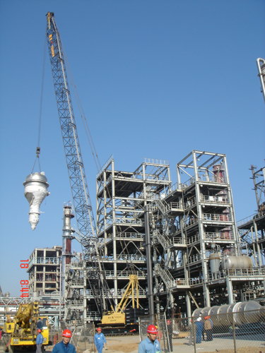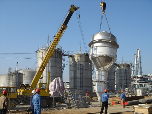新浦化学(泰兴)有限公司20万吨年氯乙烯项目部 五期年产5万吨苯胺,流化床反应器双机抬吊,变幅竖立