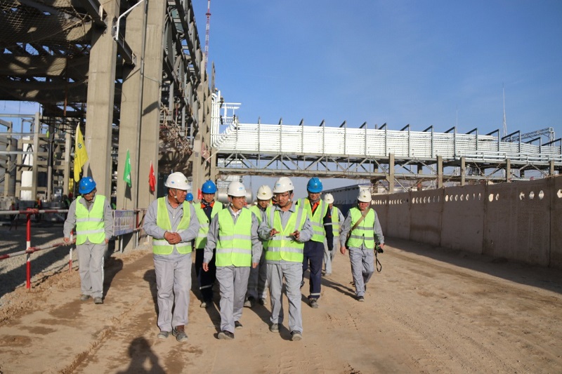 检查期间,胡二甫查看了施工现场,听取了项目进度工作汇报,高度认可和感谢中乌工人的辛勤付出。
