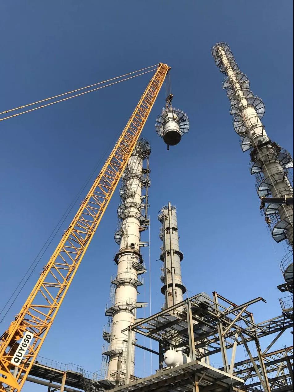 宝丰烯烃项目自开工以来,共吊装塔器11台,在塔器吊装过程中,公司参战人员克服了塔器超高超重、作业空间狭小、到货滞后等困难,做好科学策划、合理安排,运用腾、挪、转、移等办法将难度一一降低,均做到了一次性吊装就位,为后序的工艺管道安装奠定了良好的基础。