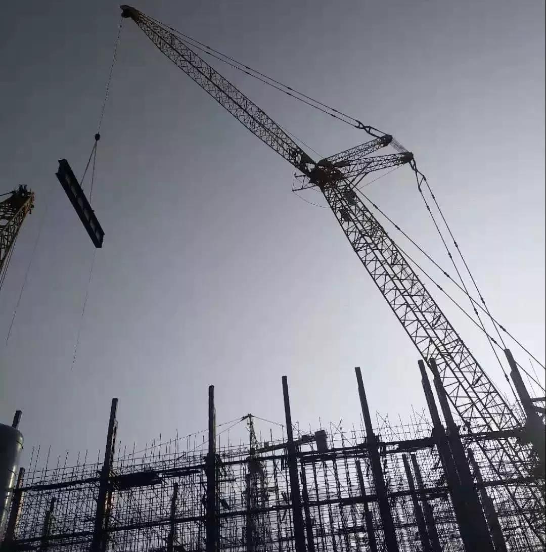 该项目自2月28日上午开始进行吊装,所需吊装的行车梁共计24根,最重一根重达5.5109吨,压缩机厂房长123米,宽30米,分3次站位吊装幅度为48米,采用260吨履带吊吊装。经过三天的奋战,3月1日上午,24根行车梁全部吊装完成。