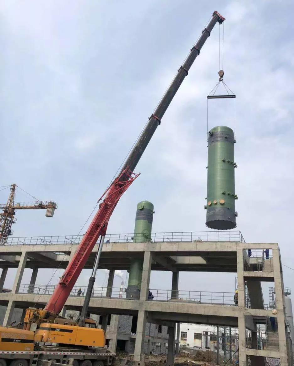 3月17日,北京分公司安徽华塑二期工程氯碱项目随着烧碱装置氯废厂房3台玻璃钢塔器顺利吊装就位,标志着该项目的安装工程正式拉开序幕。