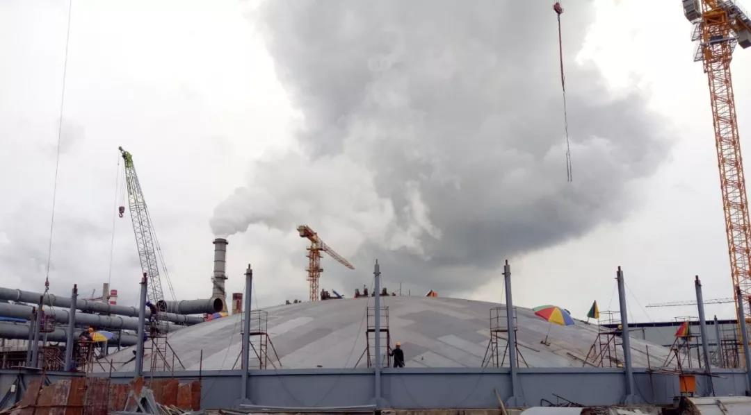 3月14日,印尼分公司德信项目煤气柜顶板地面铺设完成。