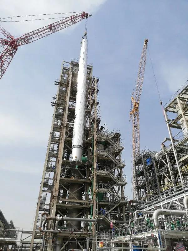 北京分公司大连恒力石化炼化一体化项目醋酸装置设备(锆塔)吊装就位