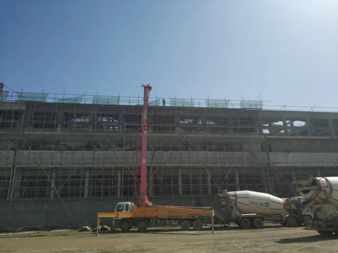 循环水场(二)包括四个冷却塔、两个吸水槽、两个泵房、一处变电所及旁滤间。其中,四个冷却塔是该标段主体框架,每个冷却塔长124米,宽23.6米,高18.98米,结构复杂,各层无平台,全是梁柱结构。面对时间紧、任务重、施工难度大、危险性高等问题,项目部决定将冷却塔顶层混凝土分三次浇筑,采用两端先浇筑,中间1/3段后浇筑工序。冷却塔A顶层中间1/3段从早上7点开始,到下午1点混凝土全部浇筑完成,成功封顶。(石仁明)