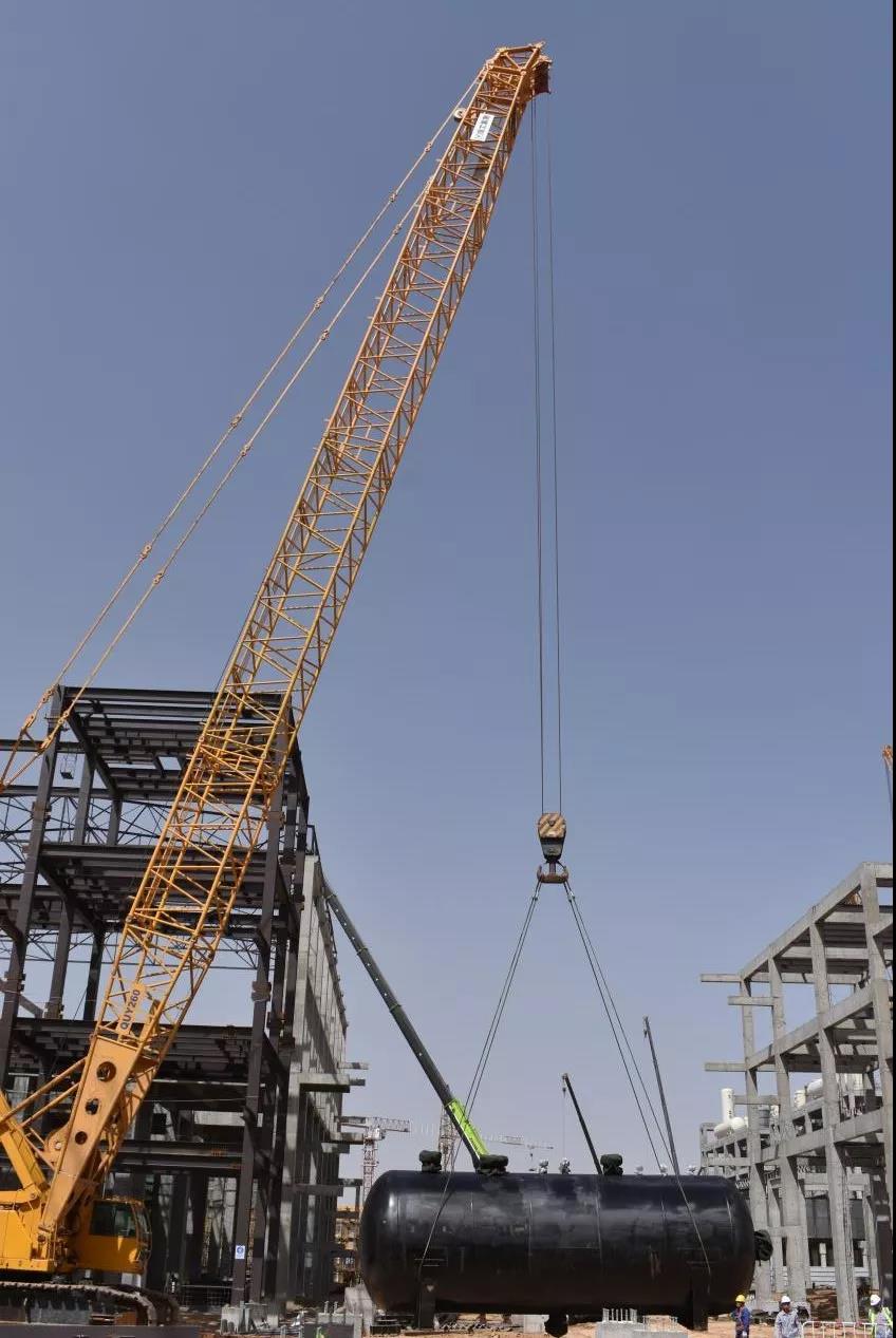 本次吊装的省功器是净化装置的第一台大件设备,长11.2米,直径3.6米,总重量37吨,采用260吨履带吊一次性吊装就位。省功器设备到场之前,技术人员精确测量、认真编制吊装方案。实现了设备当天到货卸车、吊装就位。宝丰净化项目净化装置共有设备286台,总重8357吨,其中30吨以上大件设备58台,本次省功器一次性吊装就位,为后续大件设备吊装打下了坚实的基础(第三安装公司 张凌云)