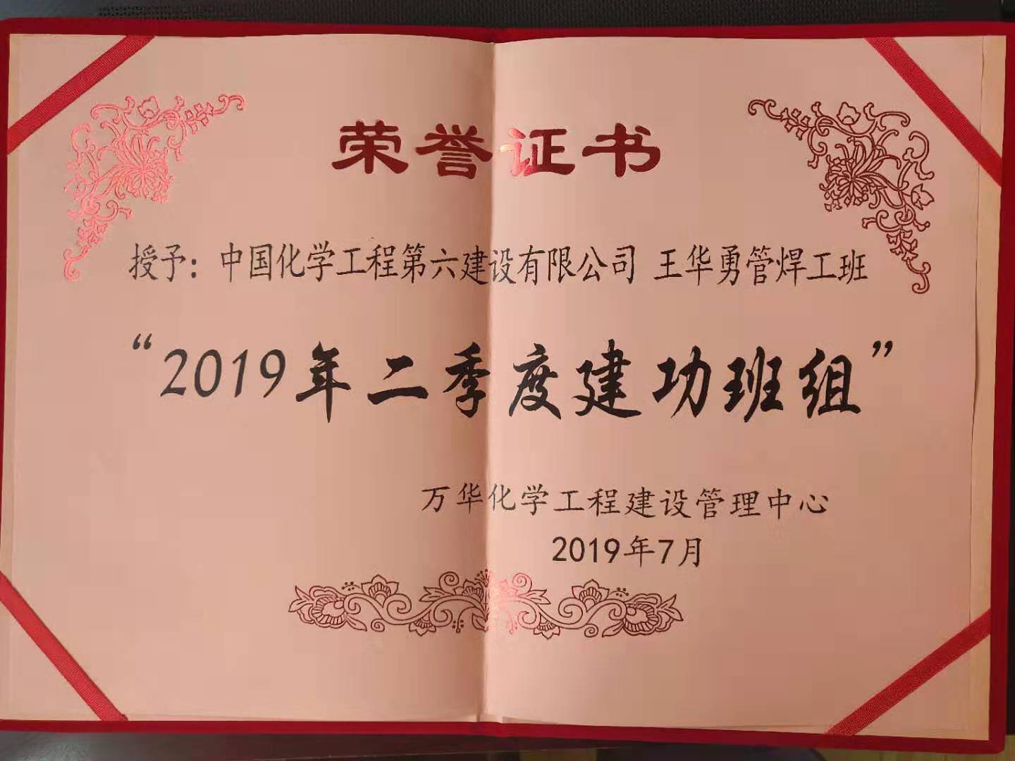 近日,第一安装公司在烟台万华业主的“当好主力军、聚力新动能、建功新时代”的三重劳动活动中荣获二季度建功班组奖和二季度建功标兵奖。
