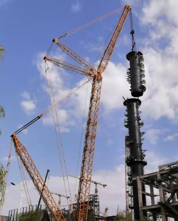 宝丰甲醇项目净化装置洗涤塔是整个甲醇项目最高、最重、最大的设备,总重量达1100吨。此次顺利吊装成功获得了业主的好评。