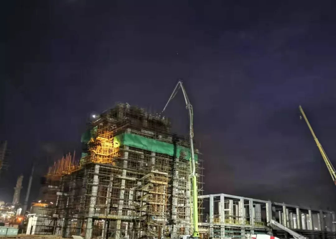Engro公司作为巴基斯坦当地的知名企业,在施工标准及安全方面都要求执行国际标准。现场混凝土浇筑高度超过20米,浇筑难度大,当地气温高,每天不低于35°,混凝土的特性难以保持良好,给浇筑作业带来不少困难。