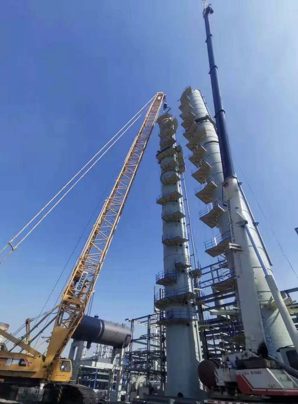 11月4日下午,山东分公司承建的山东睿泽化工科技有限公司MCP联产新型化工材料及配套工程项目核心设备C4分离装置两台丙烯塔安装完成,项目正式进入大干阶段。