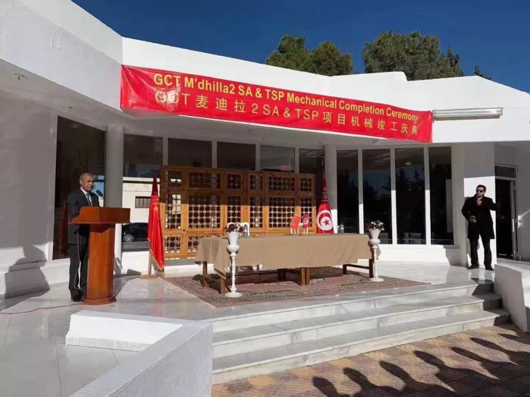 当地时间12月26日,由突尼斯项目部承建的突尼斯GCT麦迪拉2SA&TSP项目工程机械竣工,并举行了竣工庆典仪式。中国驻突尼斯大使汪文斌,商务参赞张凤玲,业主GCT总裁阿拉尼,东华科技总经理崔从权、公司副总经理唐文方及参建各方代表出席了仪式。