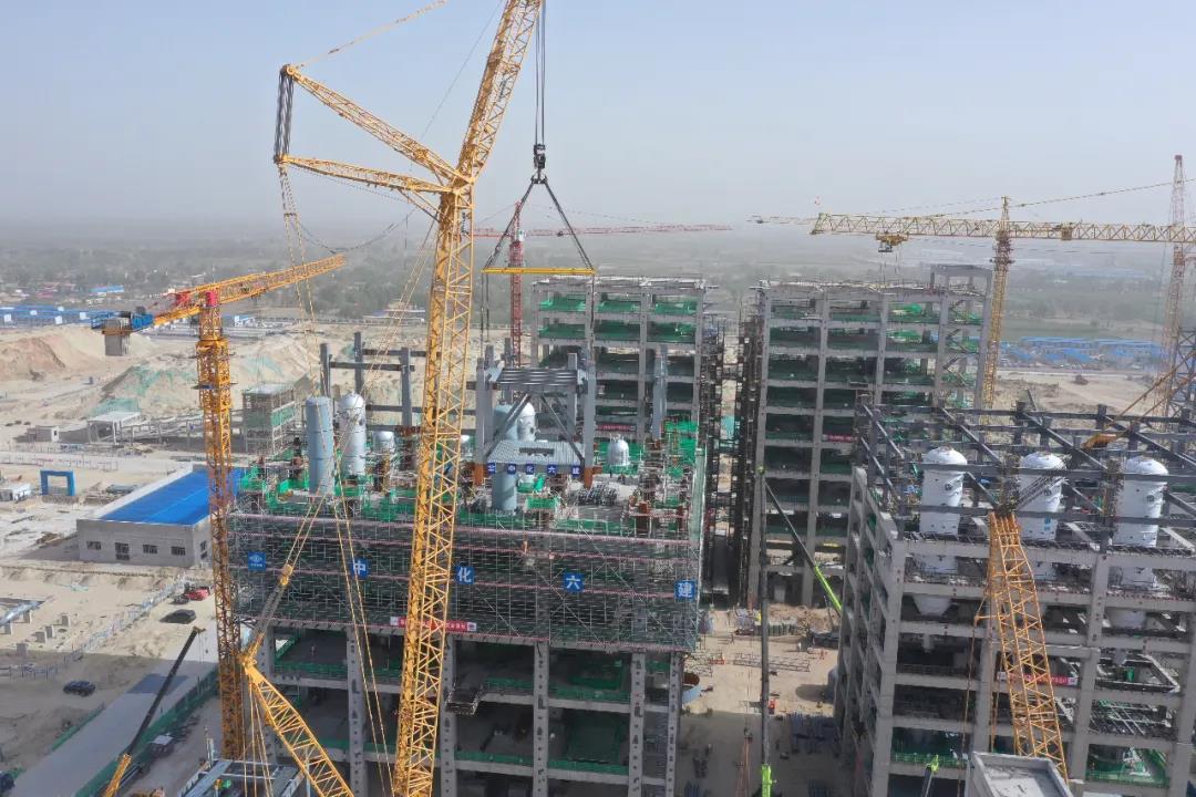 6月3日,第三分公司承建的内蒙古久泰新材料大型气体岛项目气化装置钢结构模块成功吊装就位。