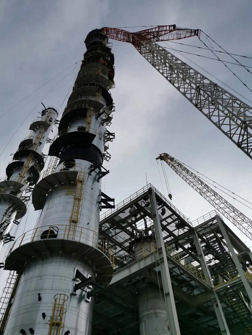 7月30日上午7时,西北分公司汇能项目T1601变换气洗涤塔第五段吊装成功。
