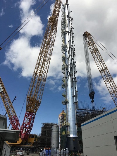 西南分公司浙江石化(二期)工程油渣制氢项目设备吊装成功