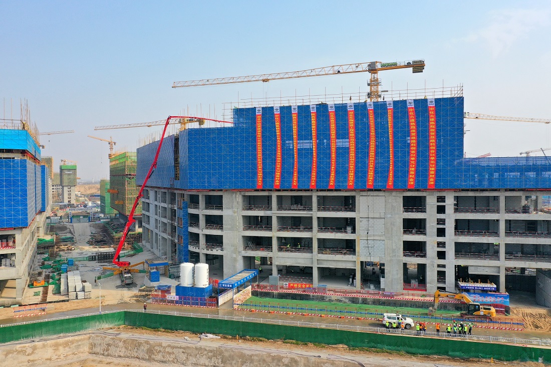 2月23日,中化六建西安丝路科创谷起步区项目04单元5#综合办公楼主体结构封顶,04单元1#--8#地基与基础分部验收一次通过。