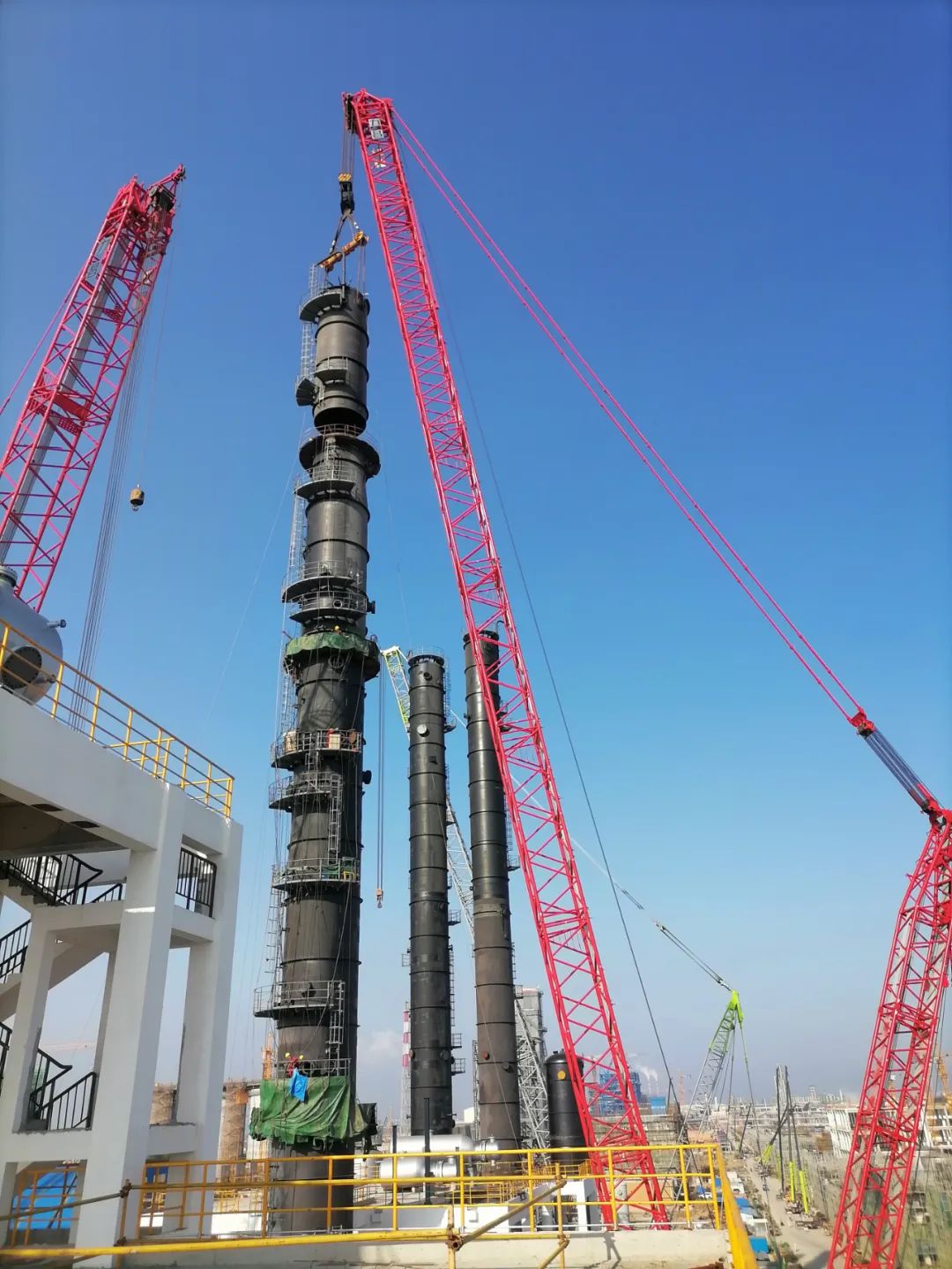 中化六建福建永荣项目洗涤塔顺利吊装就位