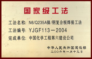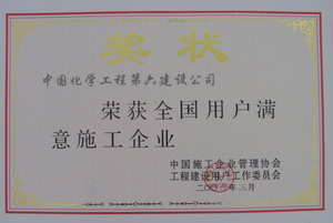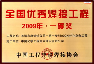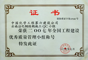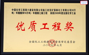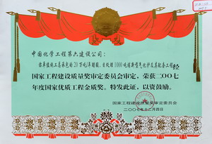 2007年20万吨年醋酸日处理1000吨煤新型气化炉及期配套工程获国家优质工程金质奖