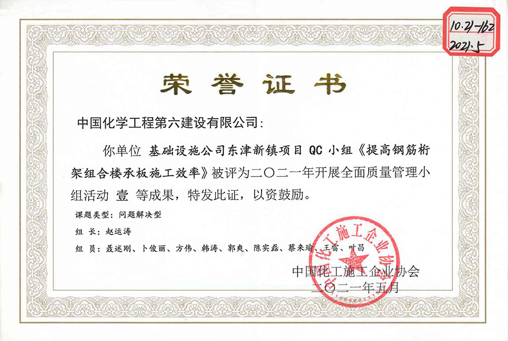 2021年工程建设质量管理小组活动成果大赛一类成果(中建协)