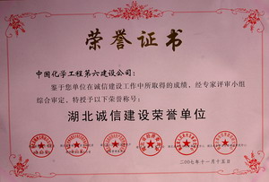 2007年度湖北诚信建设荣誉单位