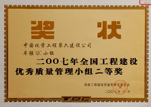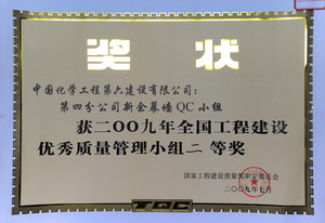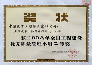 国家级2008年直属安装一队储罐项目QC小组获全国工程建设优秀质量管理小组二等奖