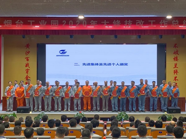 9月25日,在万华化学烟台工业园2020年大修技改工作总结表彰大会上,第一安装公司和第三安装公司的两支队伍获得“优秀承包商队伍”荣誉称号,李彬彬、王晨、王冬冬、杨国增、周丽萍、宋宝军、辛显坤、梁鹏磊、徐智鹏、聂小寅获得“大修承包商先进个人”荣誉称号。